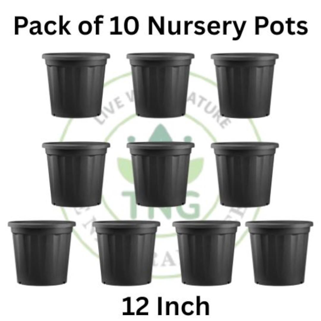 🪴 12-Inch Nursery Pots are versatile, medium-sized containers ideal for growing a wide range of plants—from saplings and herbs to flowering shrubs and compact trees. Crafted from durable plastic, they strike a balance between portability and root space, making them a favorite among gardeners and nursery professionals.